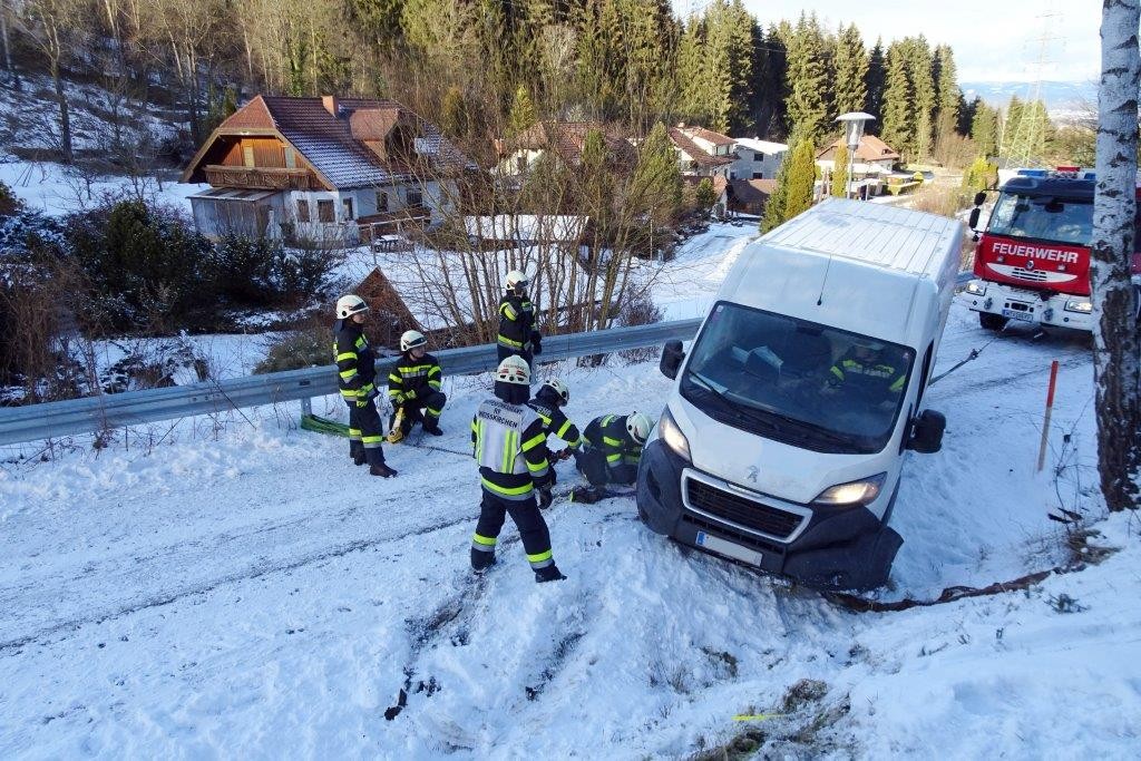 Neuerlichen Alarm gab es am Dienstag-Nachmittag: Ein Paketzusteller war gerade dabei, im Ortsteil Hahnleiten am Waldweg ein Paket zuzustellen, als sein Klein-LKW auf der steilen Zufahrt über die Böschung zurückrutschte und zum Teil in der Luft hängend stehen blieb.