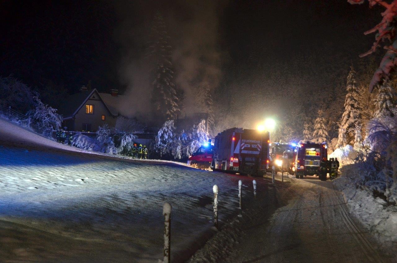 Als die Einsatzkräfte eintrafen, stand das Dachgeschoß bereits im Vollbrand. Gemeinsam begannen die Feuerwehren unter der Einsatzleitung des Weißkirchner Kommandanten HBI Jakob Führer mit den Löscharbeiten, der vorbeifließende Stüblerbach sorgte für eine ausreichende Wasserversorgung. Durch das Öffnen des Daches konnte das Feuer rasch und effizient unter Kontrolle gebracht werden, auch ein Übergreifen der Flammen auf das unmittelbar angrenzende Hauptgebäude verhinderten die mit 10 Fahrzeugen ausgerückten 46 Feuerwehrmitarbeiter. Es gelang auch, rechtzeitig das Auto des Besitzers aus der darunterliegenden Garage heraus zu ziehen.