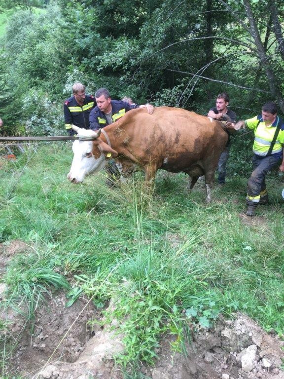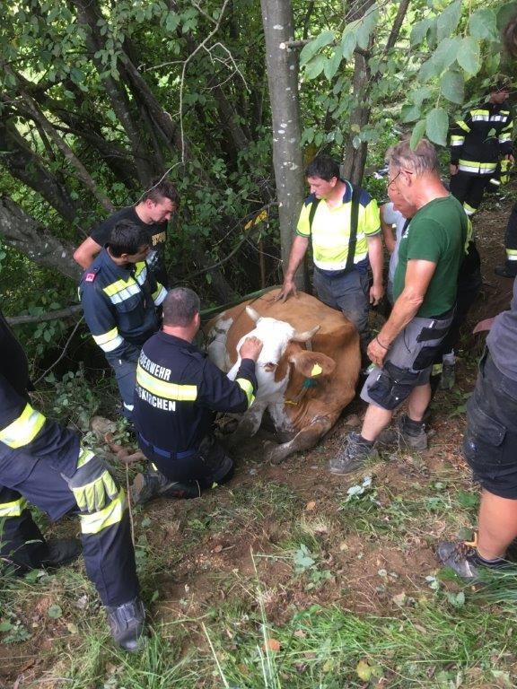 Am Mittwoch, den 12. August, wurde die Freiwillige Feuerwehr Weißkirchen zu einem Einsatz „Tierrettung“ gerufen. In Kathal war bei einem Landwirt eine Kuh in ein schwer zugängliches Gerinne gefallen, das zudem noch sehr aufgeweicht war. Unter der Einsatzleitung von BM Mario Leitner gelang es den 15 Kameraden, am Tier Schlaufen anzulegen und sodann das Rind Schritt für Schritt mittels Seilwinde aus dieser Zwangslage zu befreien.