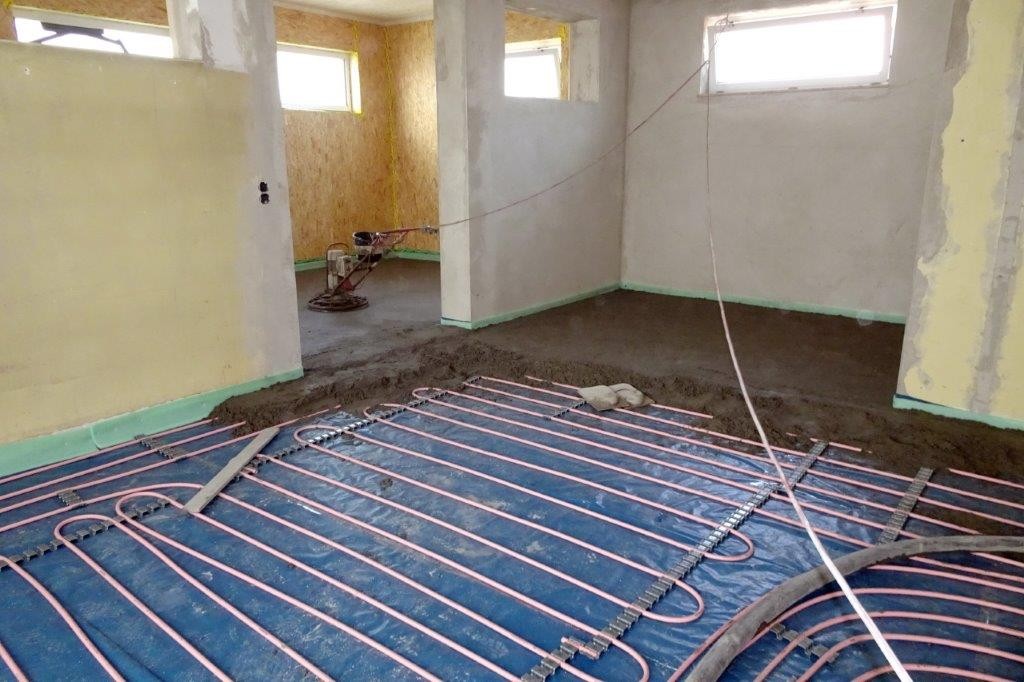 Die Firma Vogel konnte letzte Installationsarbeiten vornehmen, bevor die Firma Genger mit der Verlegung des Estrichs begann.