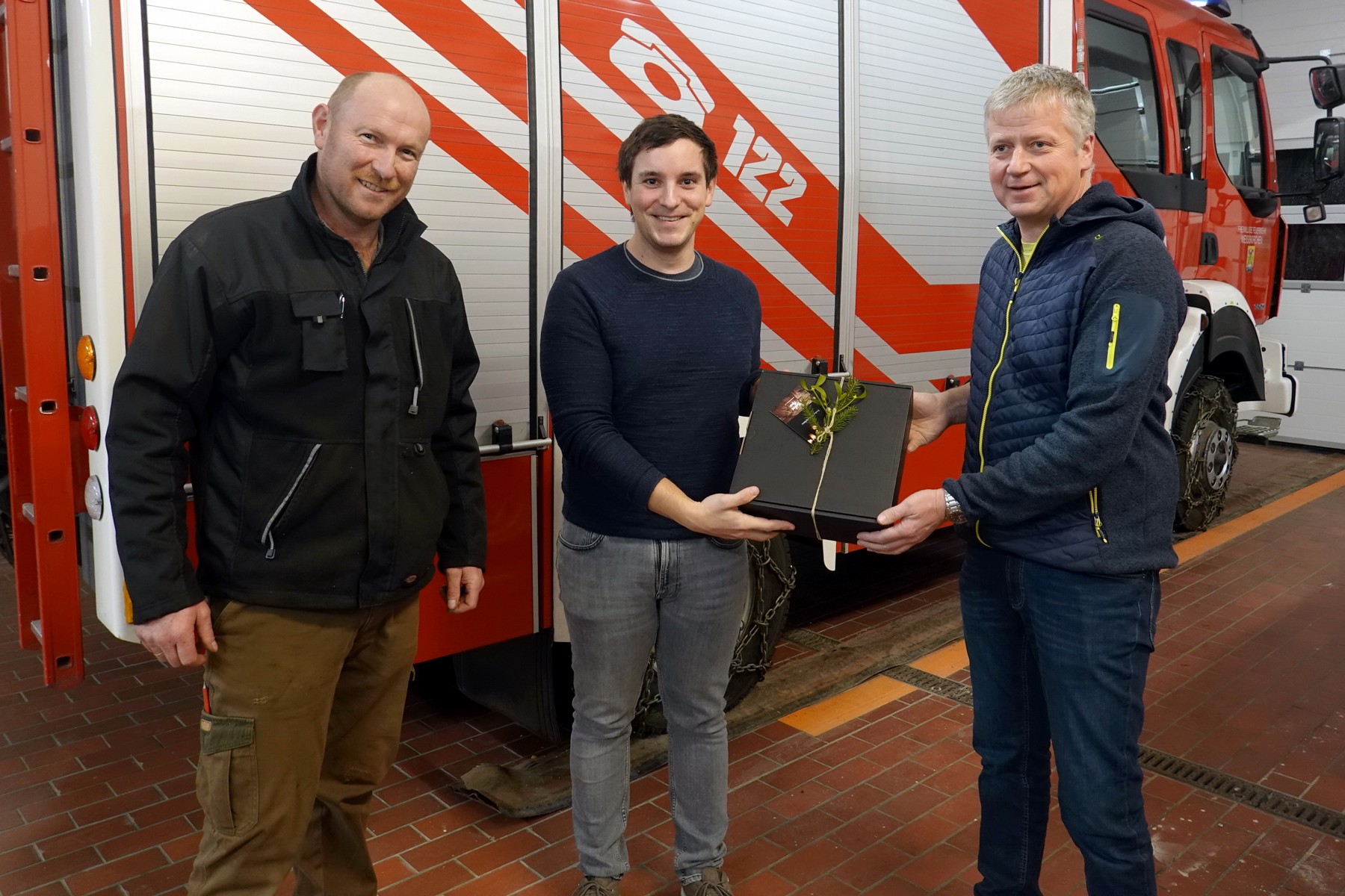 FM Christian Bucher feierte am 20. November seinen 30. Geburtstag. Bei der ersten Übung nach dem Lockdown gratulierten ihm HBI Jakob Führer und OBI Thomas Rechberger im Namen der Mannschaft sehr herzlich zu diesem Anlass.