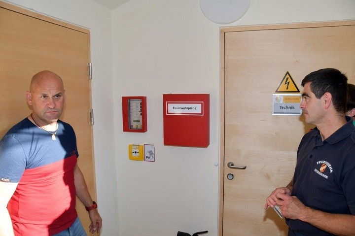 Am Montag dem 11.7. gab es für die Mitglieder der Feuerwehr Weißkirchen einen Rundgang durch die neu umgebaute Volksschule. Schulwart und Feuerwehrmitglied Reinhold Staubmann erklärte dabei die für einen Einsatzfall relevanten Anlagen und deren Bedienung. Die zahlreichen Teilnehmer finden sich somit auch im ernstfall in dem neu umgebauten und modernisierten Schulgebäude zurecht.