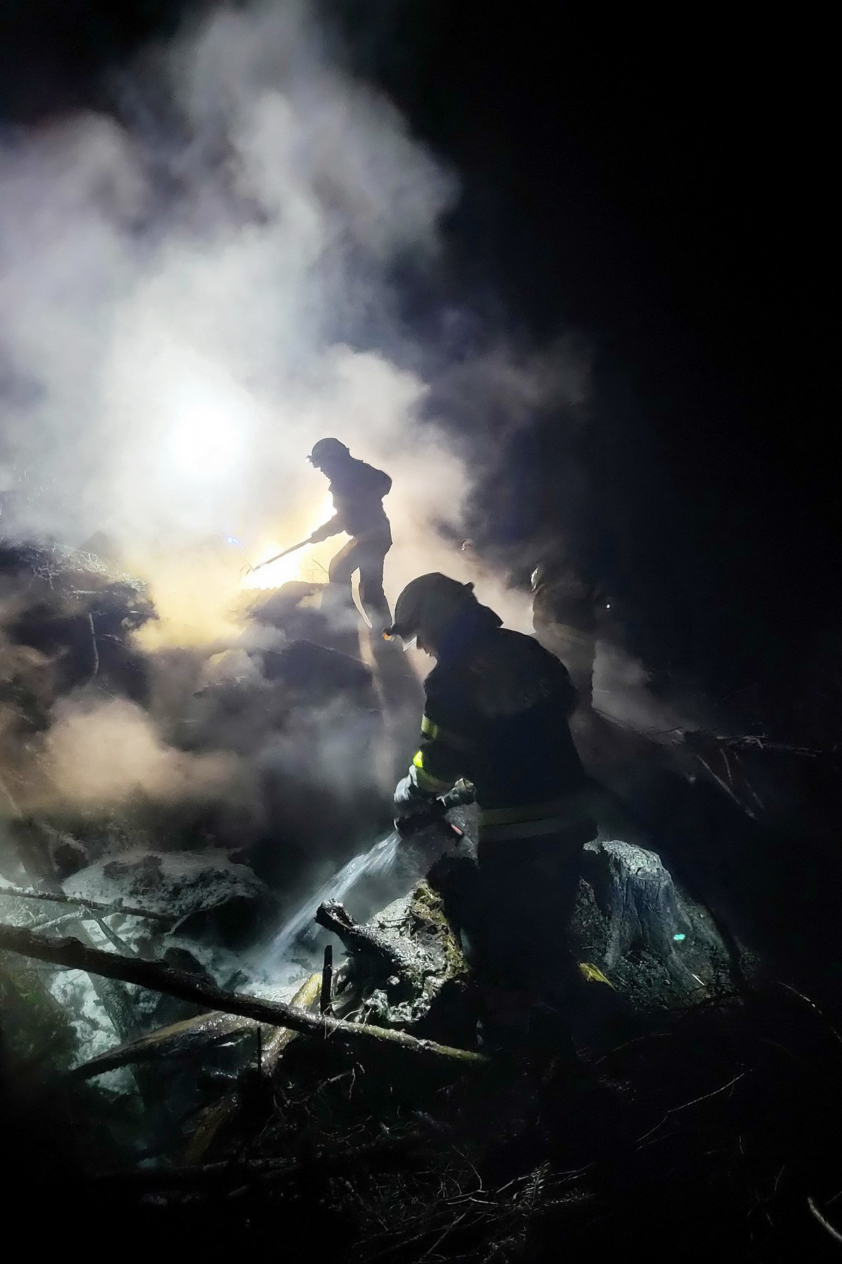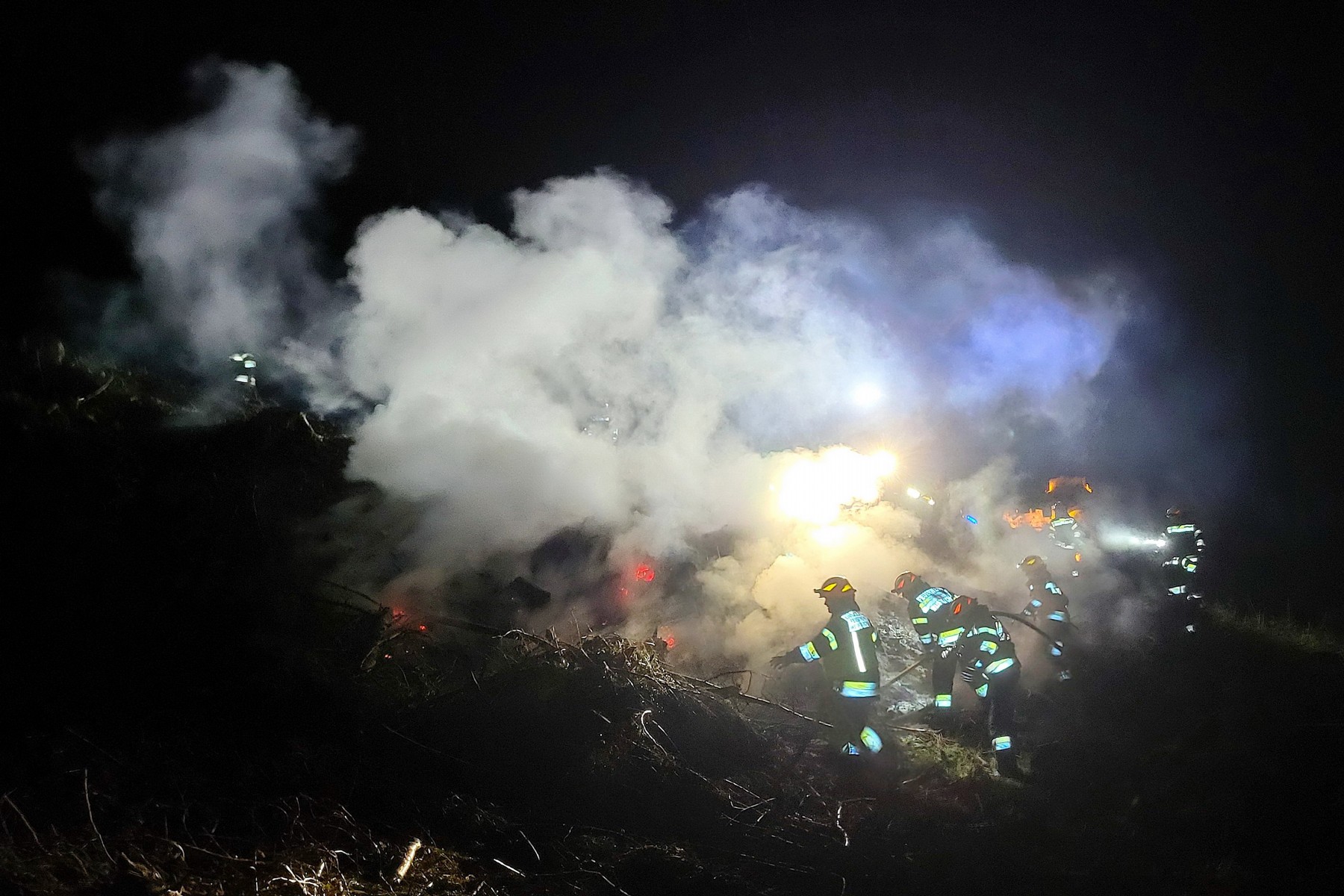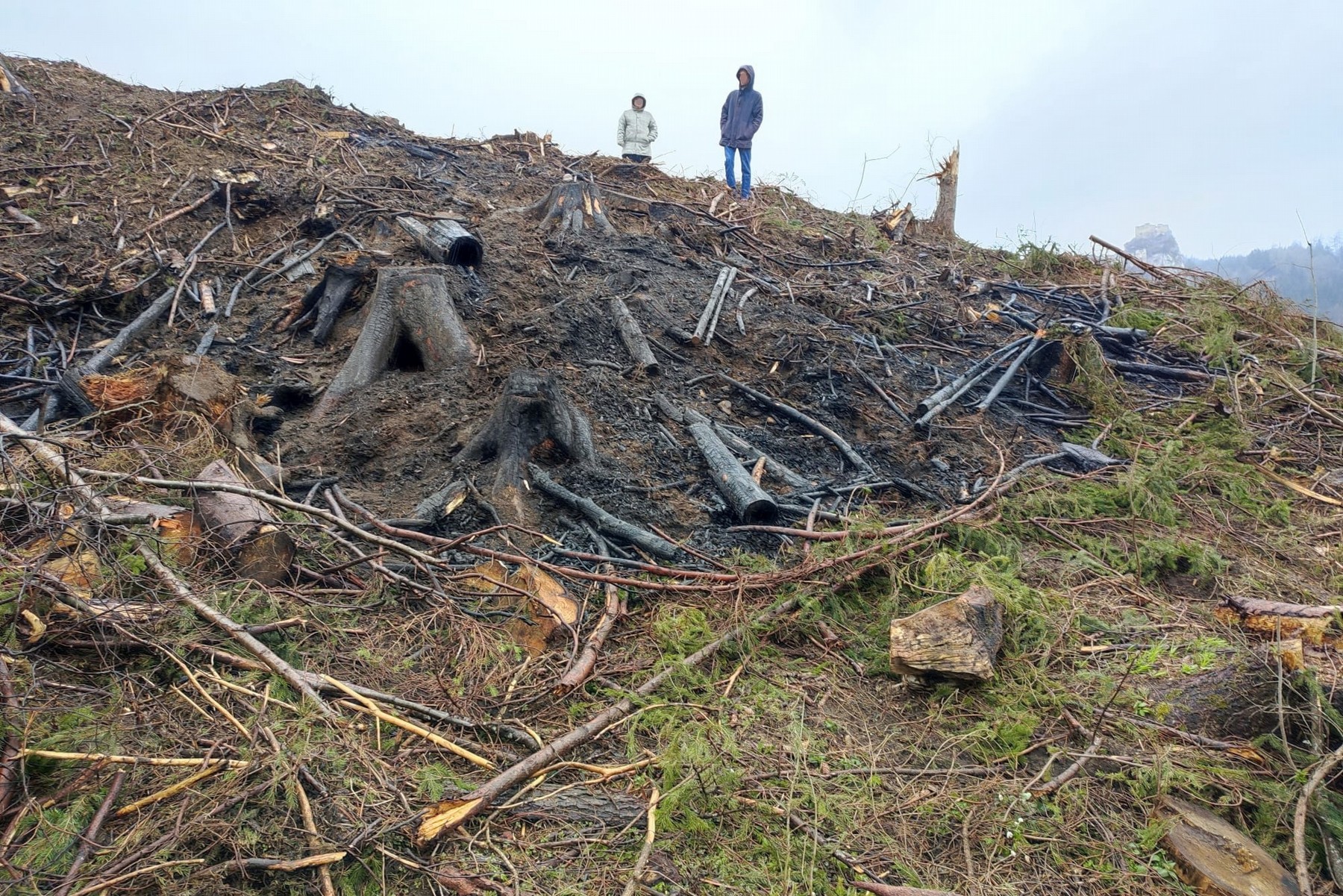 In einem Waldstück, auf dem davor noch als Folge des vorjährigen Sturmunwetters Windwurfholz geschlägert worden war, gerieten die hier gelagerten Äste aus ungeklärter Ursache in Brand.