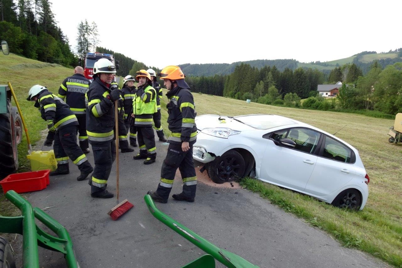 Der PKW-Lenker hatte dieses scheinbar übersehen, sein Fahrzeug wurde von der Fahrbahn geworfen und dabei auch beschädigt. Mit Verletzungen unbestimmten Grades versorgte das Rote Kreuz den Fahrer, die Polizei war auch vor Ort und die Feuerwehr unter der Einsatzleitung von HBI Markus Kogler beseitigte Ölspuren, gab Brandschutz und reinigte die Straße.