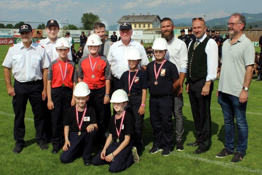 Zur Schlusskundgebung konnte der Bewerbsleiter Bereichs-Jugendbeauftragter BI Mario Leitner zahlreiche Vertreter aus Politik und Feuerwehr begrüßen und gemeinsam die begehrten Trophäen an die Kinder und Jugendlichen übergeben.