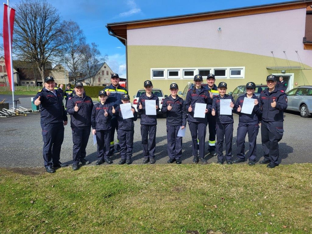 Im Wissenstestspiel Bronze traten 28 KameradInnen und in Silber 4 KameradInnen an. Im Bronze Modul schafften 36 das begehrte Abzeichen, in Silber kamen alle 18 durch und in Gold bewältigten 15 Jugendliche und 19 Quereinsteiger die Fragen in den Themenbereichen Organisation, Formalexerzieren, Gerätekunde, Dienstgrade, Nachrichtendienst und Seilknoten.