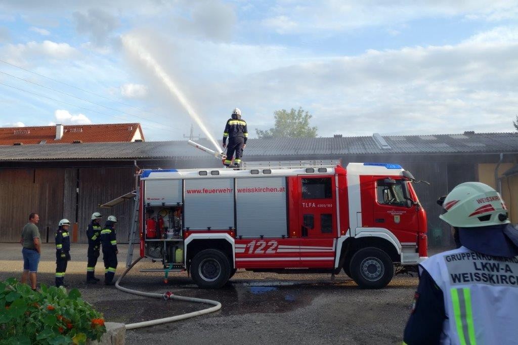 Die Annahme der montägigen Übung der Feuerwehr Weißkirchen lautete „Brand im Gelände Griesmoarhof mit 2 Vermissten“.
