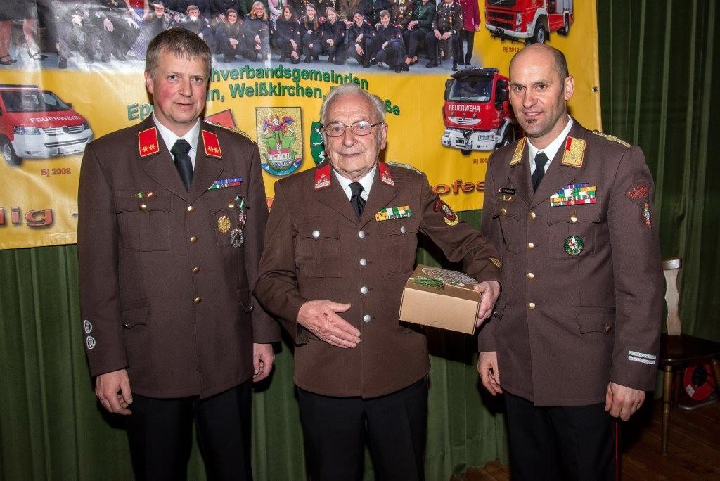Mit der Medaille für 50 Jahre Feuerwehr-Zugehörigkeit wurde EOBI Reinhard Eibensteiner geehrt. Das Verdienstzeichen 3. Stufe konnte an LM Martin Eregger und LM Andreas Steinberger verliehen werden, das 2. Stufe an OBI Jakob Führer. Besonders gewürdigt wurde EHLM Eduard Matauschek, der seit 70 Jahren Mitglied der FF Weißkirchen ist und am Geschehen noch sehr intensiv teilnimmt.