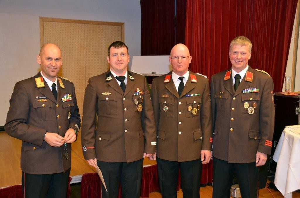 Stefan Leitner wurde angelobt, vorgestellt wurden 13 im vergangenen Herbst neu aufgenommene Jugendliche. Martin Grillitsch übernimmt von Karl Irregger die Funktion des Atemschutzwartes und Mario Leitner wurde das Zeugnis der Kommandantenprüfung überreicht und gleichzeitig zum Brandmeister befördert.