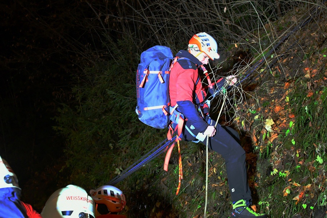 Eine gemeinsame Übung mit der Bergrettung stand diesen Montag am Übungsprogramm. Die Annahme war ein Forstunfall mit zwei verletzten Personen in steilem Gelände im Bereich Vordersieding. Nach Erkunden der Lage konnten die zwei Personen gut 20 Meter unter dem Forstweg ausfindig gemacht werden. Von der Bergrettung Zeltweg wurde eine Seilsicherung aufgebaut und mit dieser die ersten Einsatzkräfte zu den Verunfallten abgeseilt. Diese übernahmen die Lageeinschätzung vor Ort, die Erstversorgung des Verletzten und die Personensicherung. Mit den nachrückenden Mitgliedern aus Feuerwehr und Bergrettung wurde die durch einen Metallsteher aufgespießte Person mithilfe eines Trennschleifers befreit und mit Korbtrage und Vakuummatratze stabilisiert über die Seilsicherung auf den Forstweg gebracht. Die gemeinsame Übung mit der Bergrettung erleichtert im Einsatzfall die Aufgabenverteilung und Kommunikation.