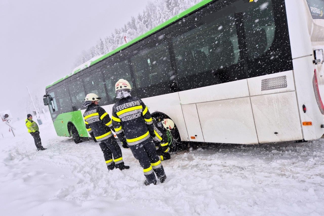 Durch den Wintereinbruch mit starkem Schneefall am vergangenen Freitag musste auch die Feuerwehr Weißkirchen zu zwei Fahrzeugbergungen ausrücken.