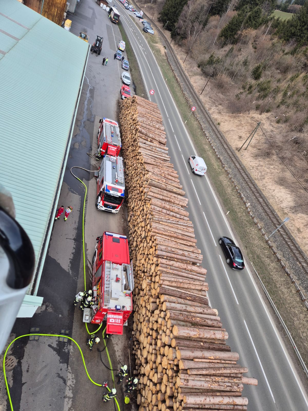 Umgehend wurden umfassende Maßnahmen zum Schutz der umliegenden Gebäude eingeleitet. Die Löschwasserversorgung wurde mittels Zubringleitung über den angrenzenden Granitzenbach sichergestellt.