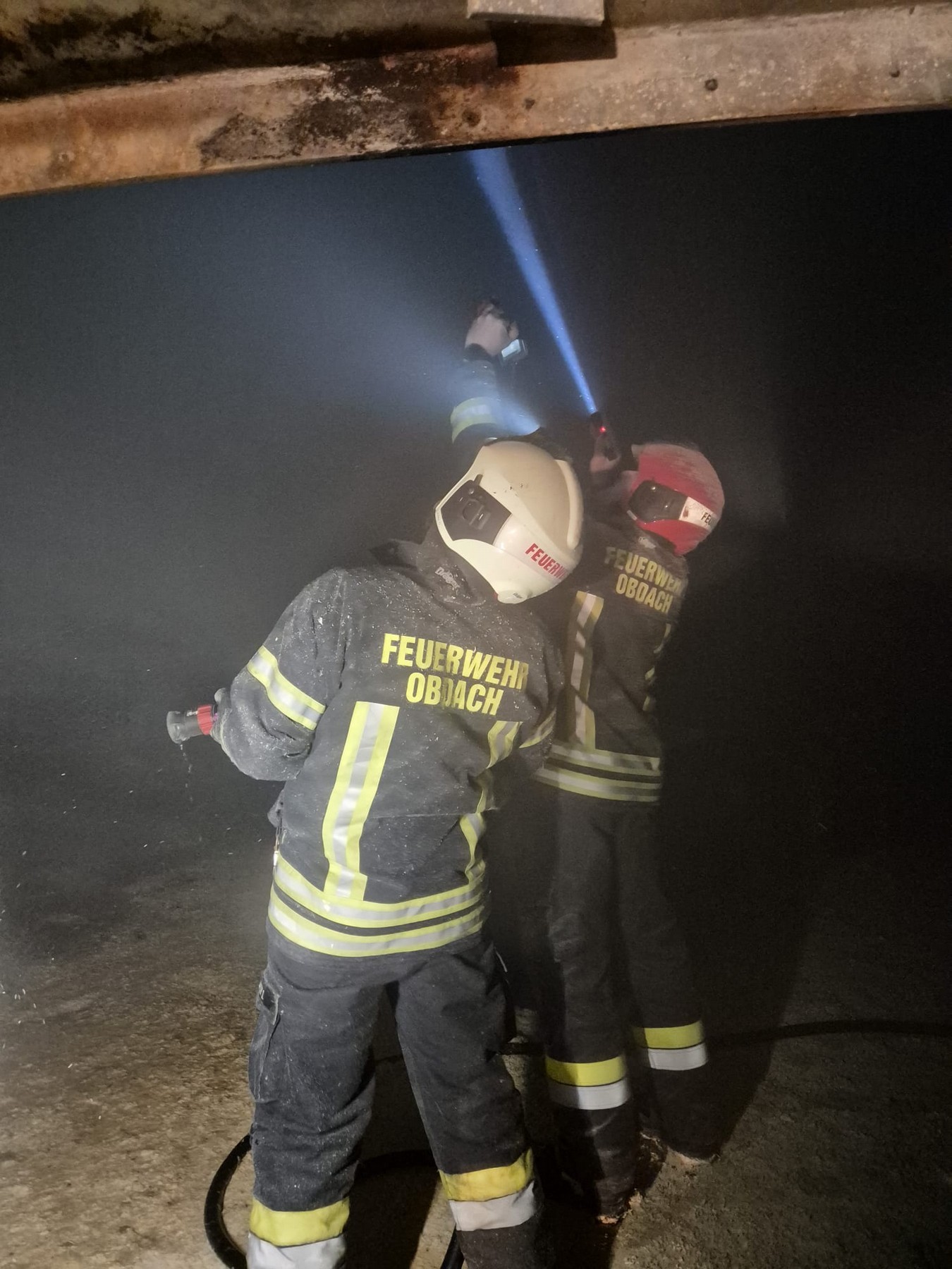Beim Eintreffen der Einsatzkräfte wurde eine starke Rauchentwicklung festgestellt – der Silo stand bereits in Brand. Aufgrund des im Silo herrschenden Sauerstoffmangels entwickelte sich jedoch kein Vollbrand, vielmehr gloste das Brandgut im Inneren über einen längeren Zeitraum dahin.