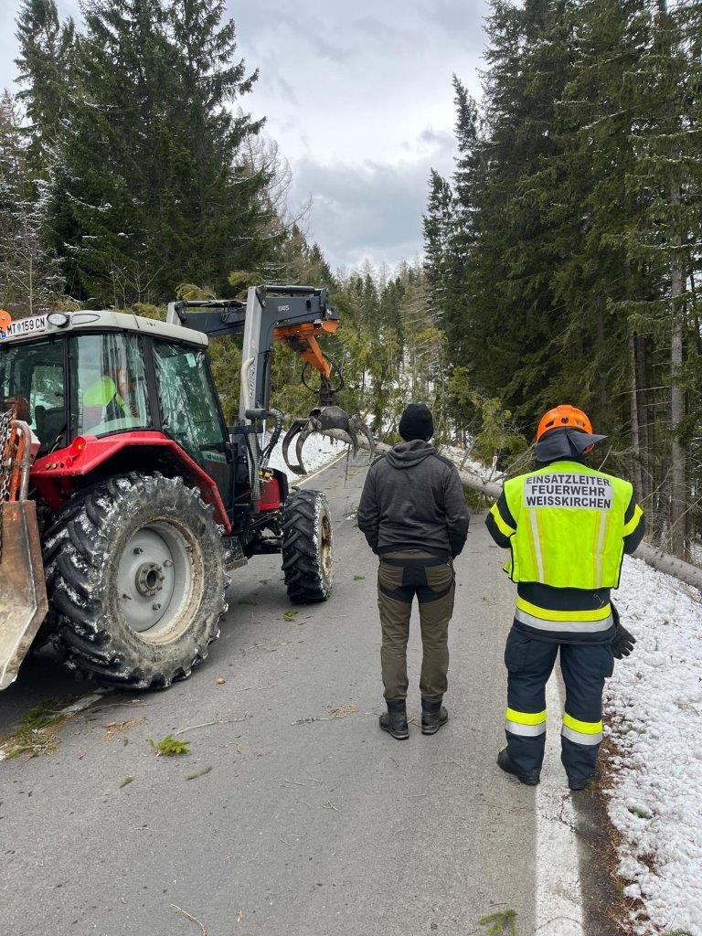 Am 26. März 2026 wurde die Freiwillige Feuerwehr Weißkirchen aufgrund der Sturmwetterlage am Nachmittag zu mehreren umgestürzten Bäumen auf der Gaberl-Bundesstraße alarmiert. Die Straße wurde abgesichert und gemeinsam mit unterstützenden Landwirten samt Forsttraktoren rasch geräumt. Auch die Polizei war an der Einsatzstelle anwesend.