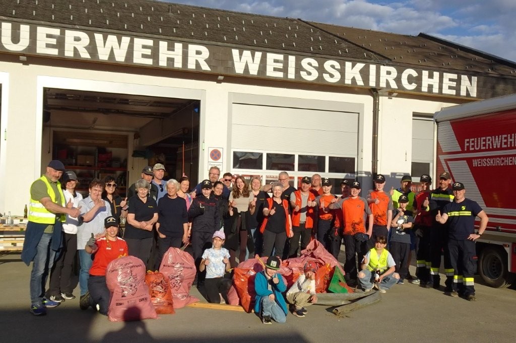Am vergangenen Freitag machten in Weißkirchen hinsichtlich des Großen Steirischen Frühjahrsputz der Umweltausschuss der Gemeinde, die Feuerwehrjugend Wießkirchen, der FC Raiffeisen Weißkirchen, die Berg- und Naturwacht sowie Privatpersonen auf, um vom Feuerwehrhaus aus in die gesamte Umgebung nach achtlos weggeworfenem Müll abzusuchen und den Unrat zu sammeln.