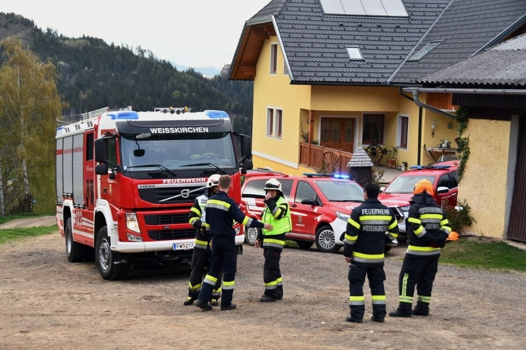 Eine Einsatzübung bei der Familie Damm vlg. Hundsegger in Schwarzenbach organisierte die FF Weißkirchen am Montag, den 20. April.
