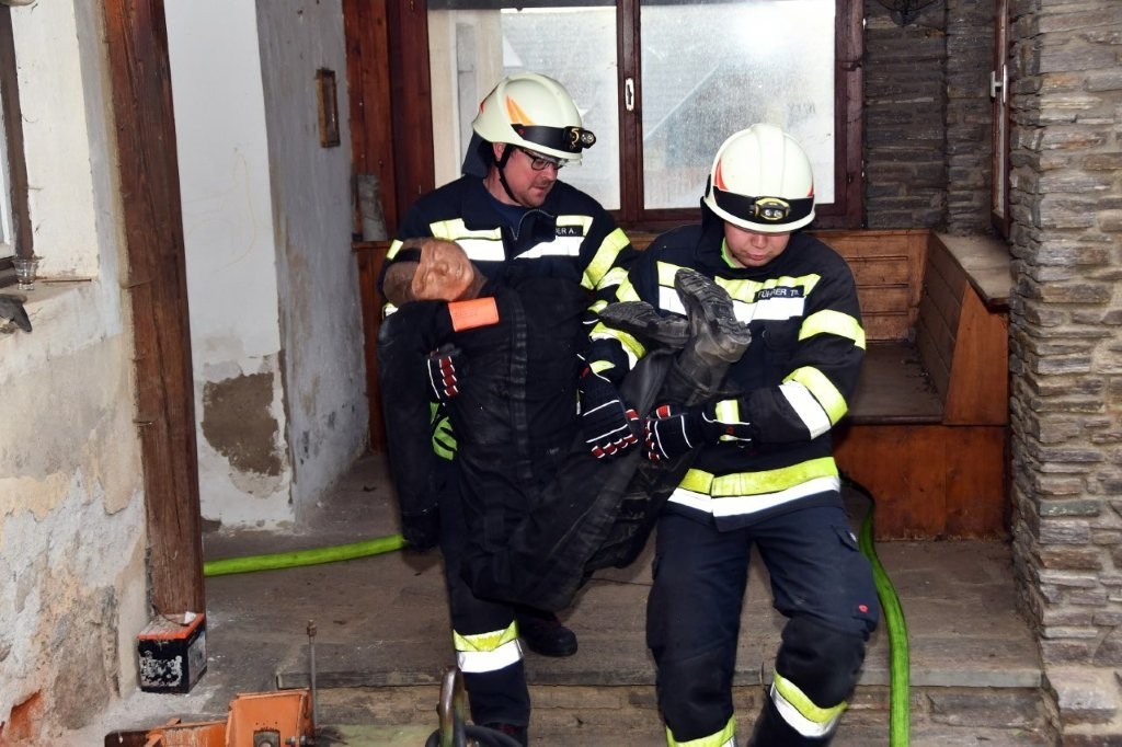 Annahme war ein Brand mit Rauchentwicklung im alten Wohngebäude und mehrere eingeschlossene Mitbewohner. Diese Lage erforderte ein vielseitiges Einsatzszenario, ein Atemschutztrupp, die Brandbekämpfung und die Bergung der Verunfallten gehörten dazu. Ein großer Vorteil dieser Übung war das nicht mehr in Verwendung stehende Haus, man konnte hier viel realitätsnäher als sonst die Aufgaben abarbeiten.